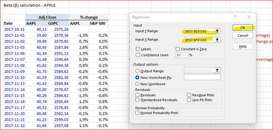 Beta calculation excel template - all 3 methods