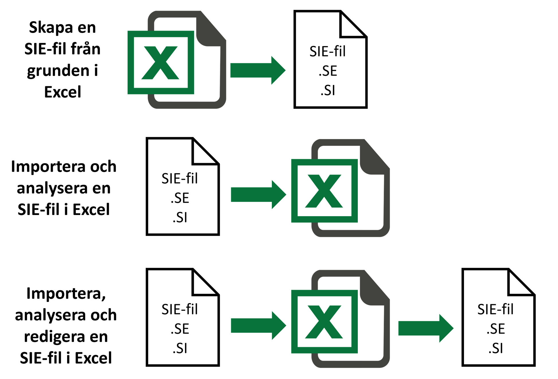 We have developed an Excel VBA macro powered tool which you can use to create a SIE4-file from scratch in Excel, or import an existing SIE-file to Excel which you can analyse and edit before saving it as an SIE-file again. The tool works for Windows. Please visit this page (in Swedish) for additional information about the tool: https://sie-fil.se/redigera-sie-fil-i-excel